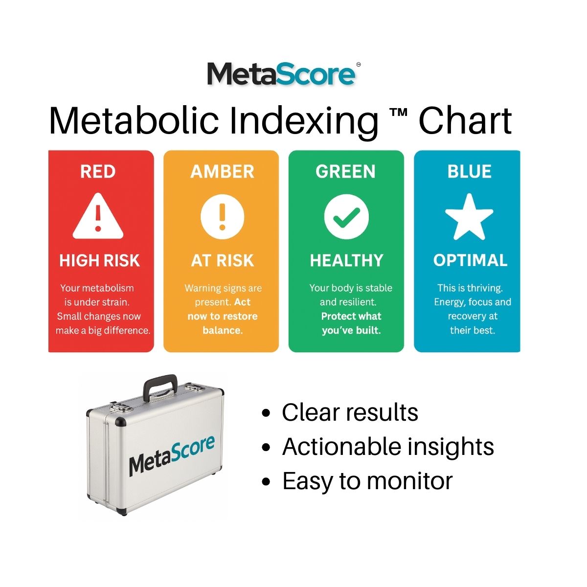Your MetaScore shows how well your body can switch between burning sugar and fat for energy. The results are displayed in a simple Red, Amber, or Green profile, giving you clarity on where you stand and what areas need the most attention.